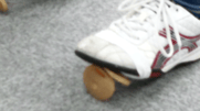 見づらいですが、足にカスタネットをつけた時の写真です。