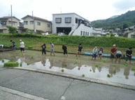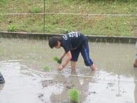 と褒められると」と褒められると満面の笑みで喜んでいました。作業も後半になるとそれぞれコツを掴んだみたいでお昼前には田植えが終了しました。